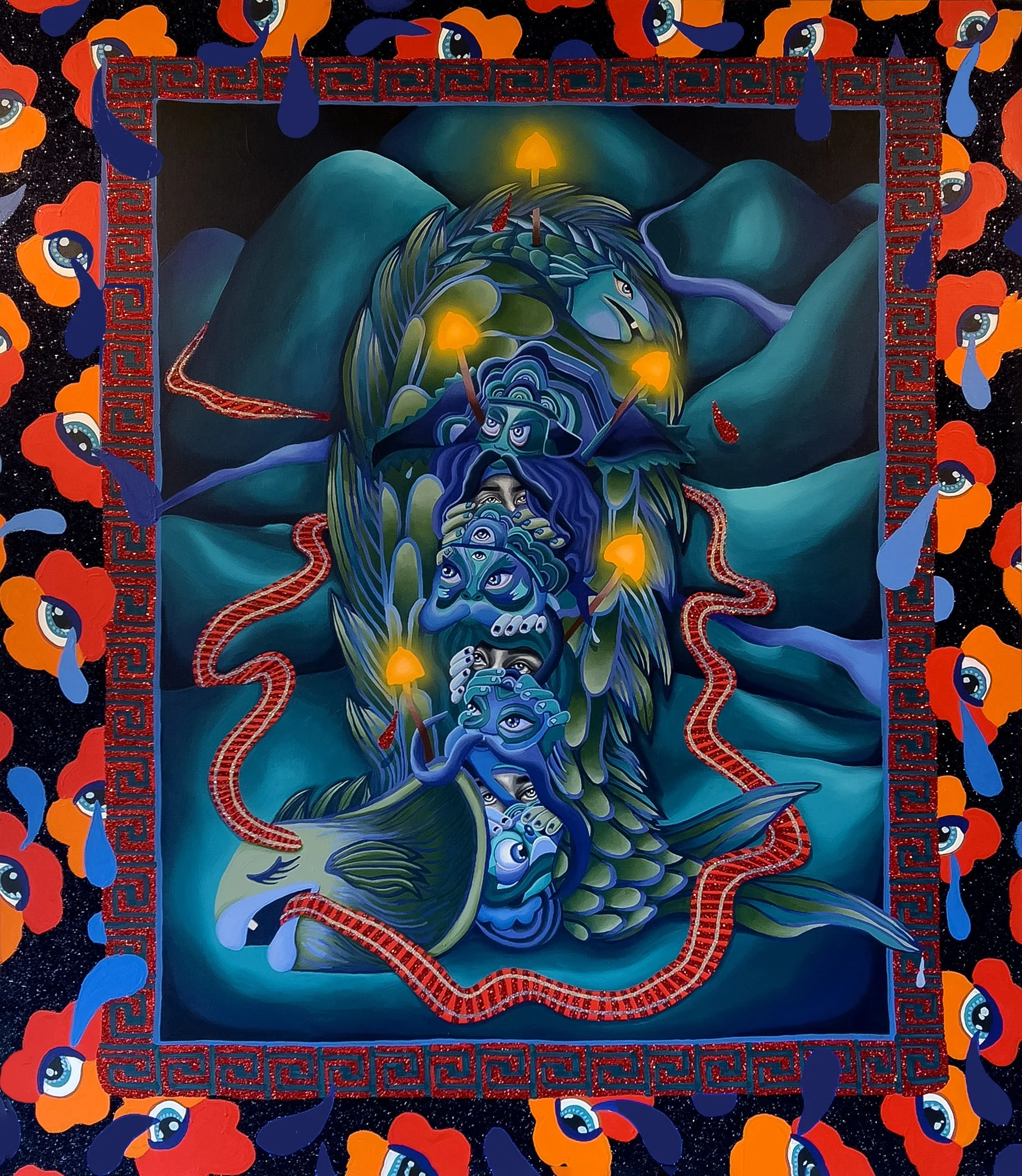 An exploration of the Chinese diaspora through the intertwined lenses of history and Chinese mythology. This series of paintings, drawings, and fiber art reflects on my own cultural identity, drawing from ancestral connections and a meditative process of introspection.